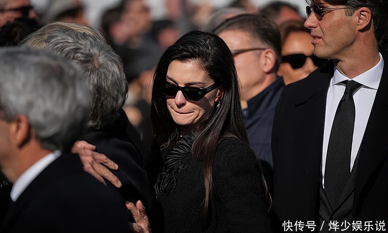好莱坞女演员安妮·海瑟薇,是最早到达的嘉宾之一,握着母亲以及丈夫亚当·舒尔曼手的她,看上去非常难过。据称,现年43岁的海瑟薇,是在拍摄《穿普拉达的女王》第一部时认识瓦伦蒂诺的,彼时时尚大师也客串出场了,饰演他自己。