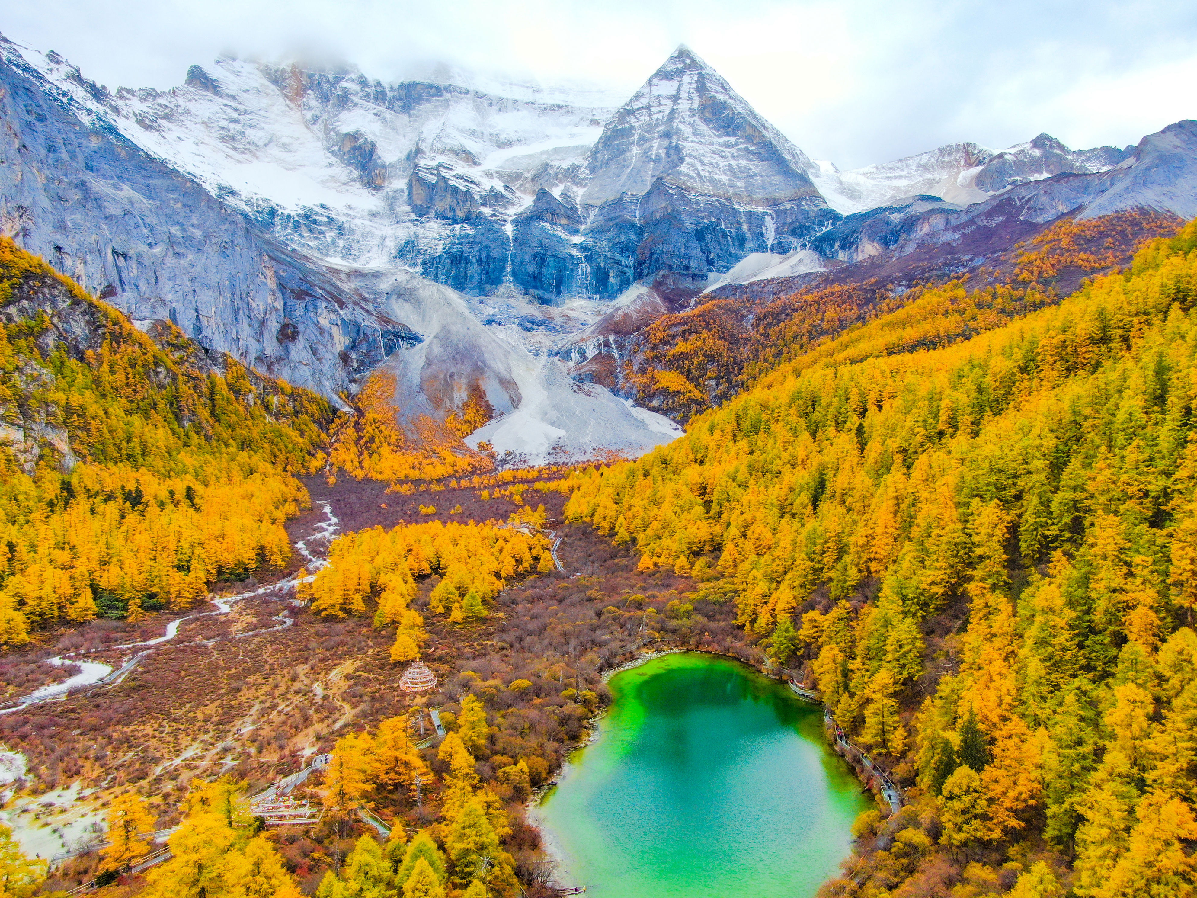 在这里可以看到圣洁的神山,壮美的森林,清澈的海子,组成了稻城亚丁美到封神级别的风光!