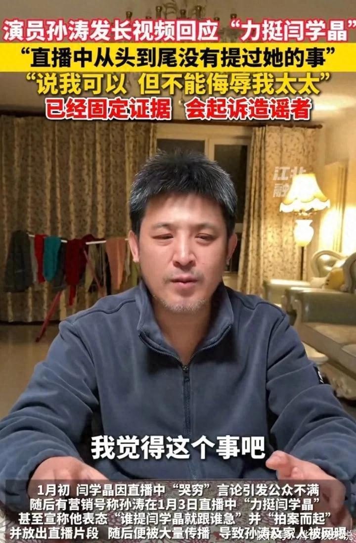 孙涛的家中显然不算豪华,看得出客厅面积比较大,但装修一般。客厅里有晾衣架,应该是天气不好,衣服拿到了室内晾晒。孙涛这条视频很火爆,点赞超过12万,评论更是眼花缭乱。孙涛直言是营销号的恶意揣测,抓住了流量,毁掉了他。他找来几个朋友,仔细回看直播视频,从头到尾,没有关于闫学晶的只言片语。